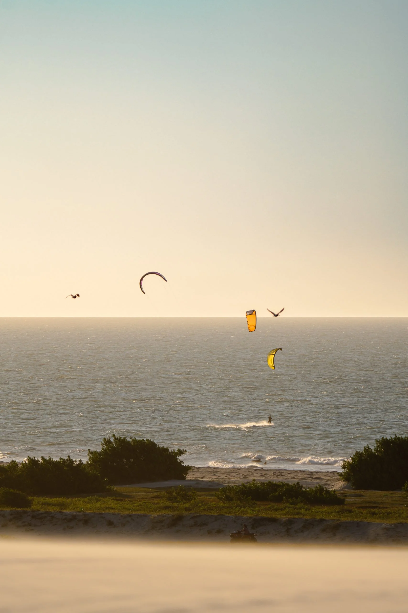 Camargo describes his ideal itinerary for a close friend: breakfast in the garden with tropical fruit and fresh coffee; a kitesurf session across emerald water; a buggy ride through Lençóis Maranhenses National Park, tracing dunes and lagoons to watch the sun dip behind the horizon. The day ends with an oyster-and-champagne bar, an eight-course tasting menu rich with local flavors, and finally an outdoor cinema projected beside the bungalow—waves as the soundtrack.